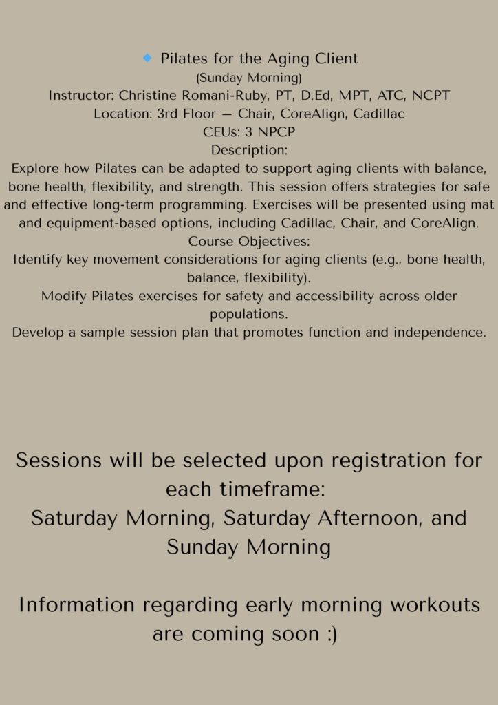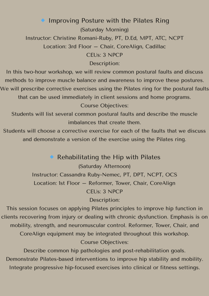 PHI Pilates Rehab Summit 2025 Please see the Course Schedule to register: https://phipilates.com/course-schedule Please see the Course Schedule to register: https://phipilates.com/course-schedule